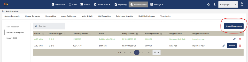 - The broker can confirm the import of the individual insurance policies via the reception with a single click, after which the same insurance policy is present in the broker’s own policy administration.